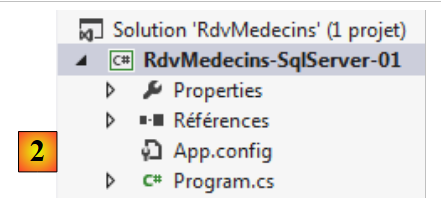 VS Express 2012 vient avec un serveur SQL embarqué. On suppose ici que VS Express 2012 a été installé [http://www.microsoft.com/visualstudio/fra/downloads]. On lance VS 2012 [1] :