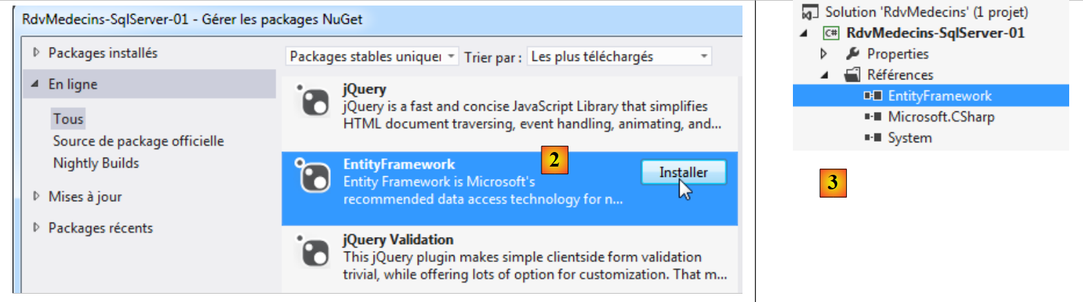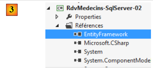 - en [2], on télécharge la dépendance Entity Framework ;
