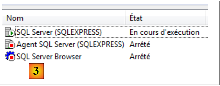 - [1] : dans le Menu Démarrer, lancer le " Gestionnaire de configuration SQL Server " ;