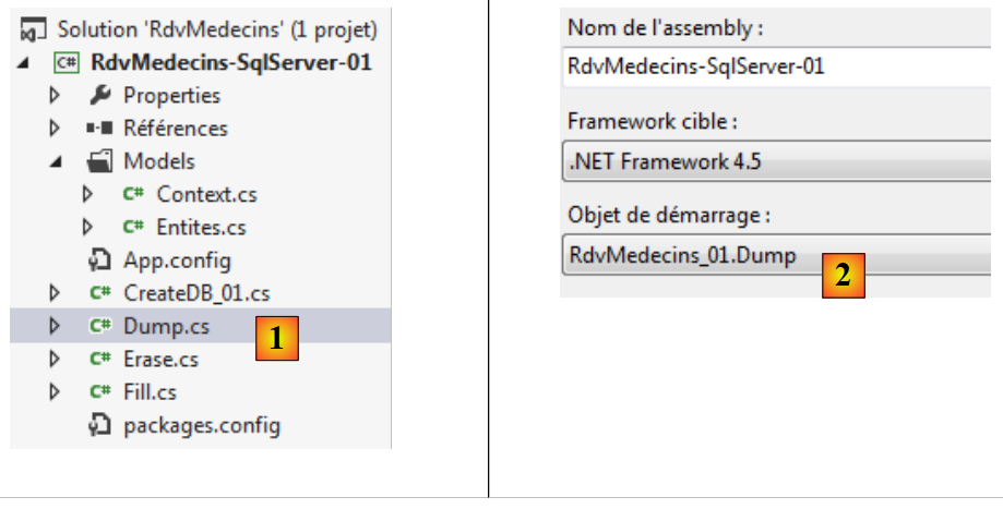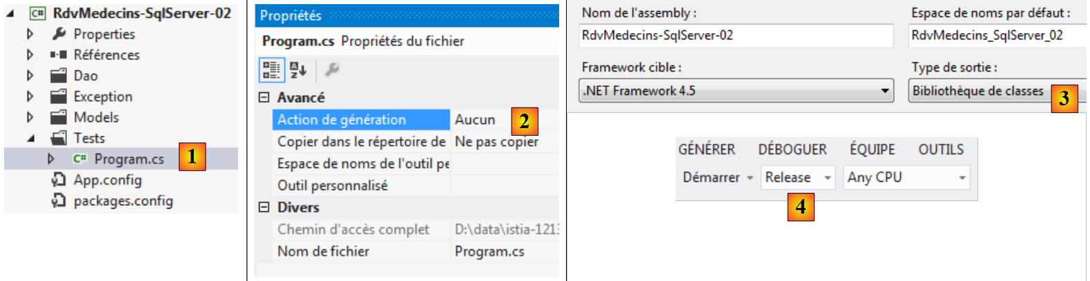 - en [4], dans le menu de VS, on indique qu'on va générer un assembly de type [Release] qui contient moins d'informations qu'un assembly de type [Debug] ;