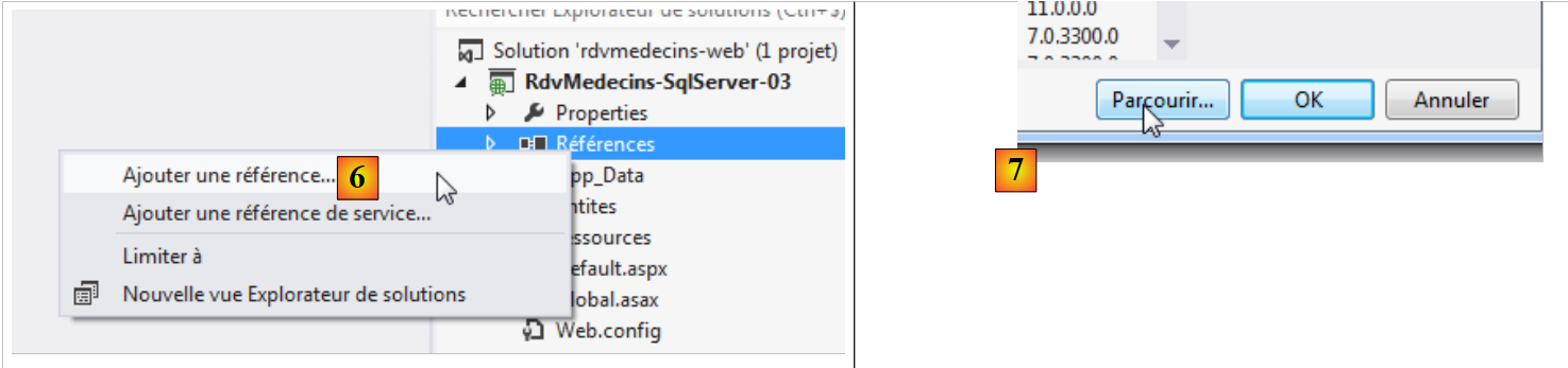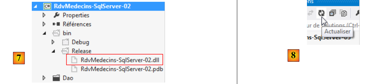 - en [7], la DLL du projet de la couche [DAO]. C'est celle-ci que le projet web ASP.NET utilisera ;
