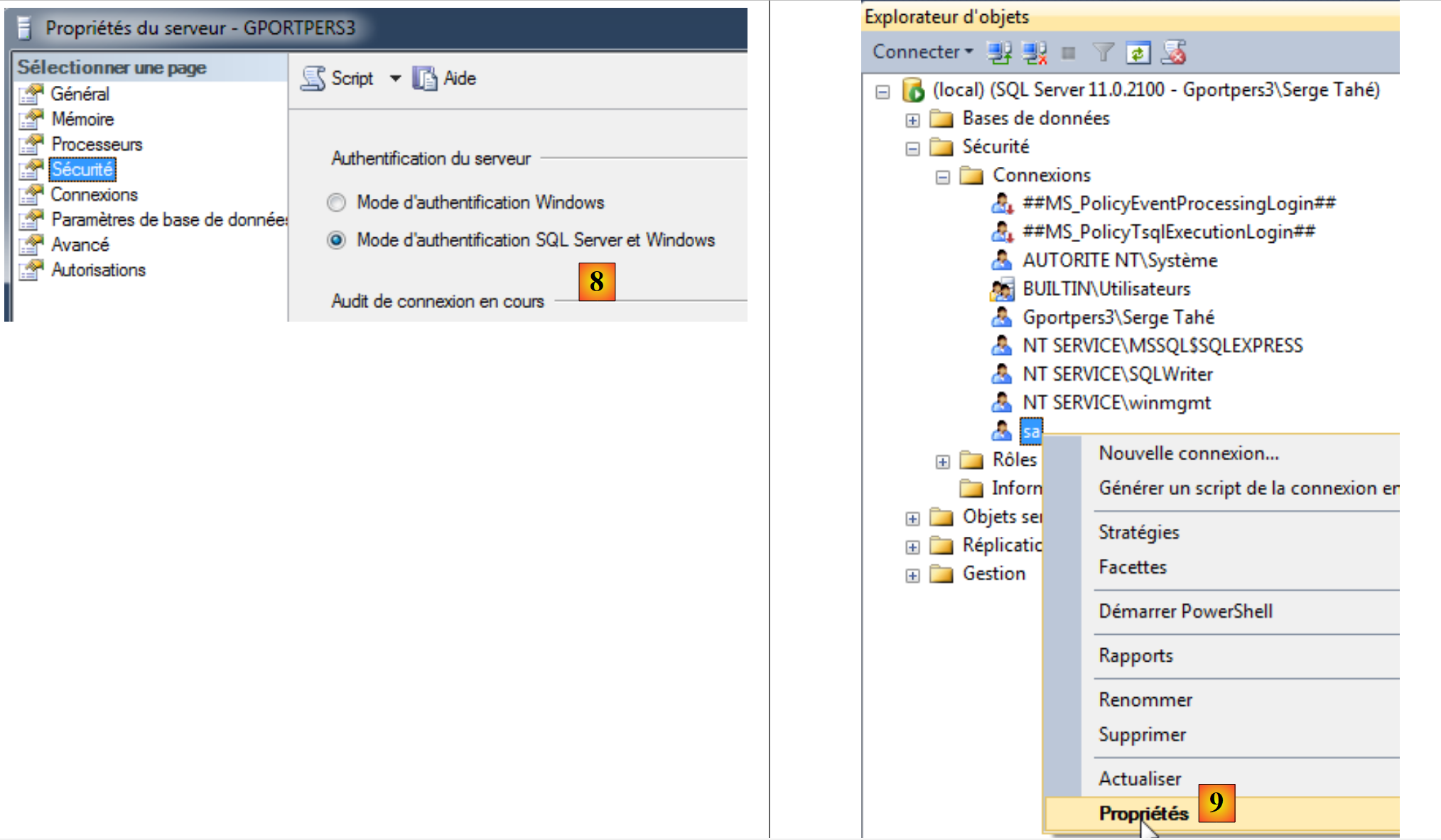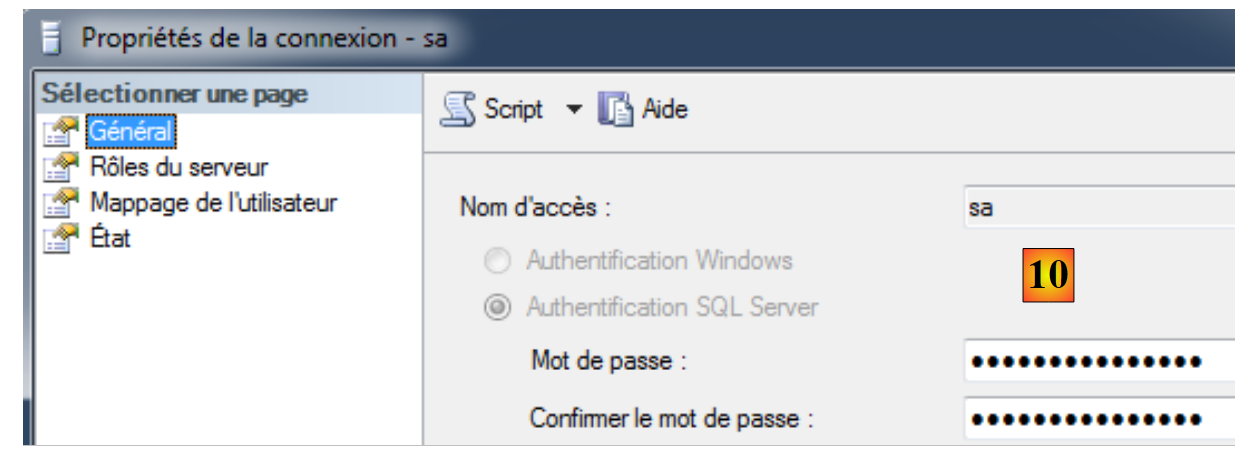 - [9] : on édite les propriétés de l'utilisateur sa (system administrator) ;