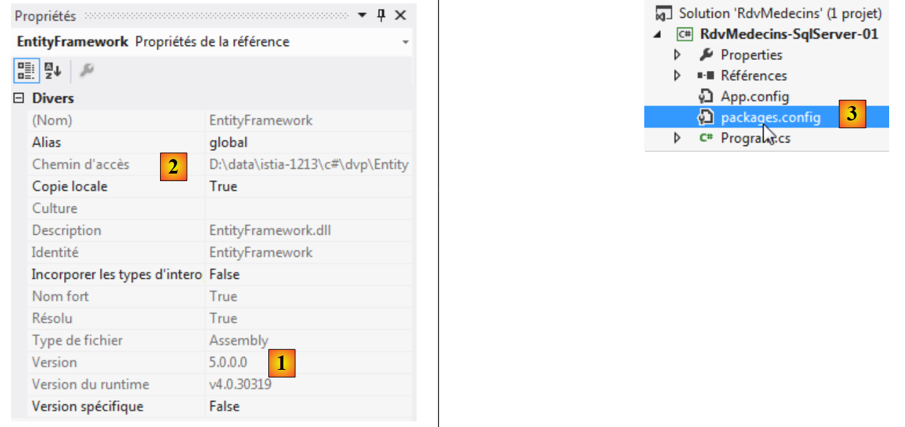 - en [2], sa place dans le système de fichiers : <solution>\packages\EntityFramework.5.0.0\lib\net45\EntityFramework.dll où <solution> est le dossier de la solution VS. Tous les packages ajoutés par NuGet iront dans le dossier <solution>/packages ;