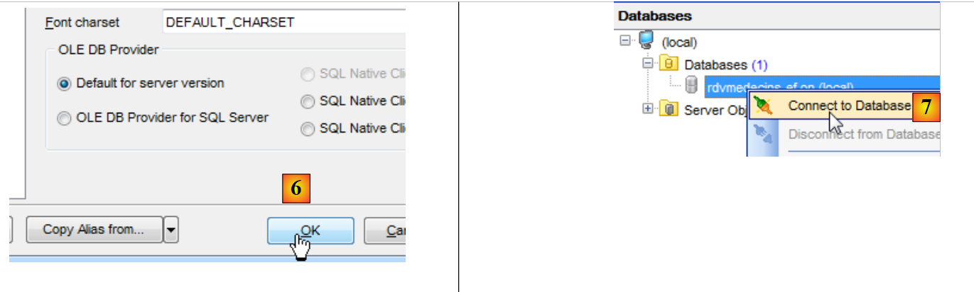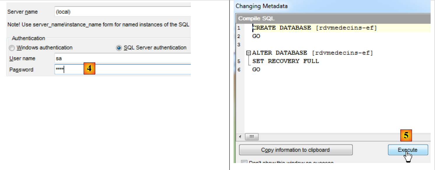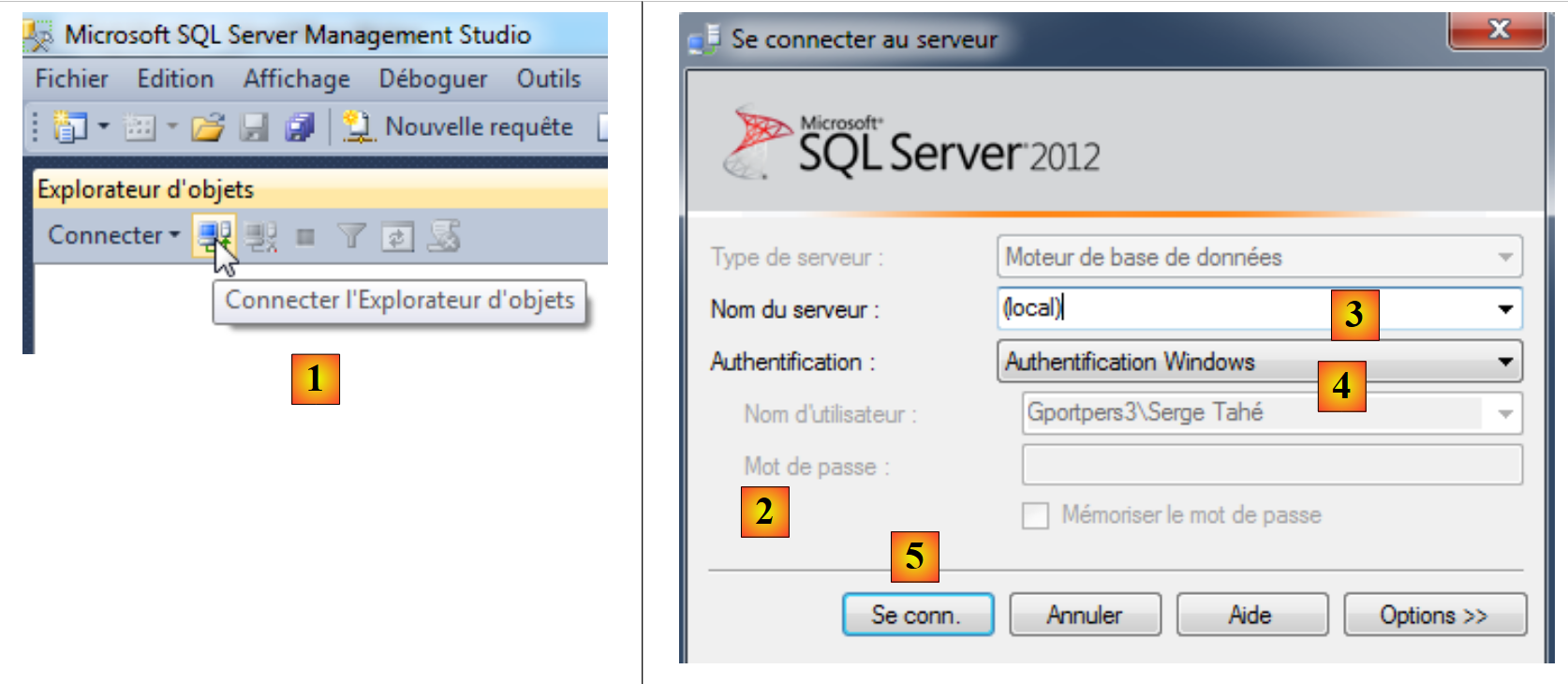 - [4] : on choisit l'authentification Windows. Il faut être administrateur de son poste pour que cette connexion réussisse,