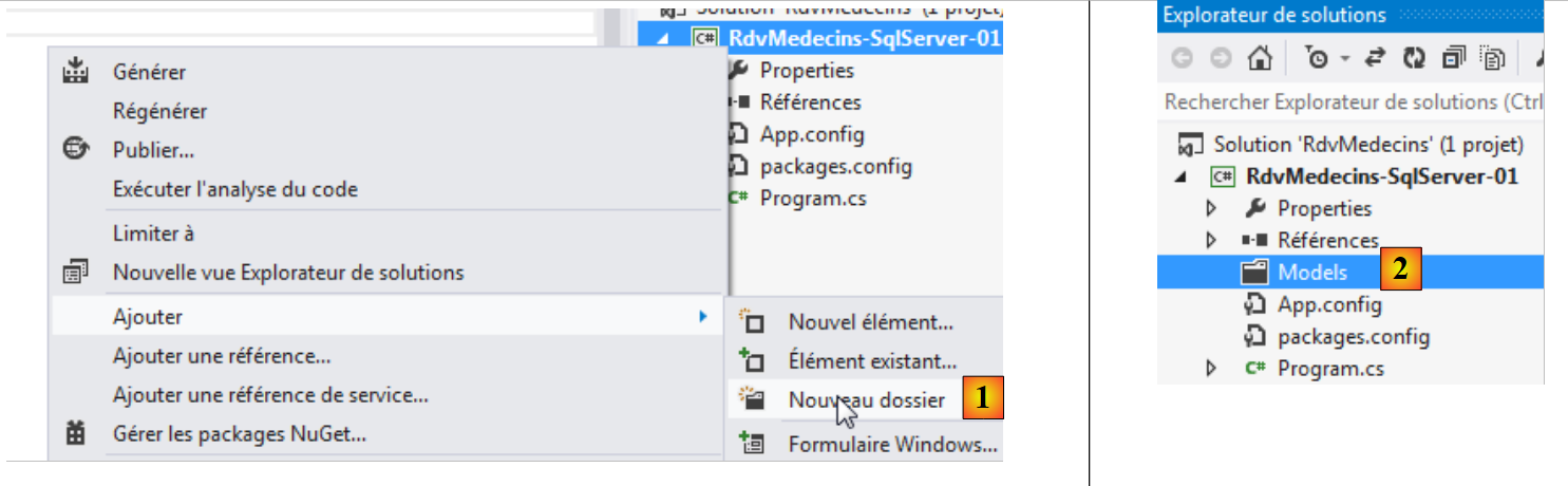 Revenons au projet VS et créons un dossier [Models] dans le projet :