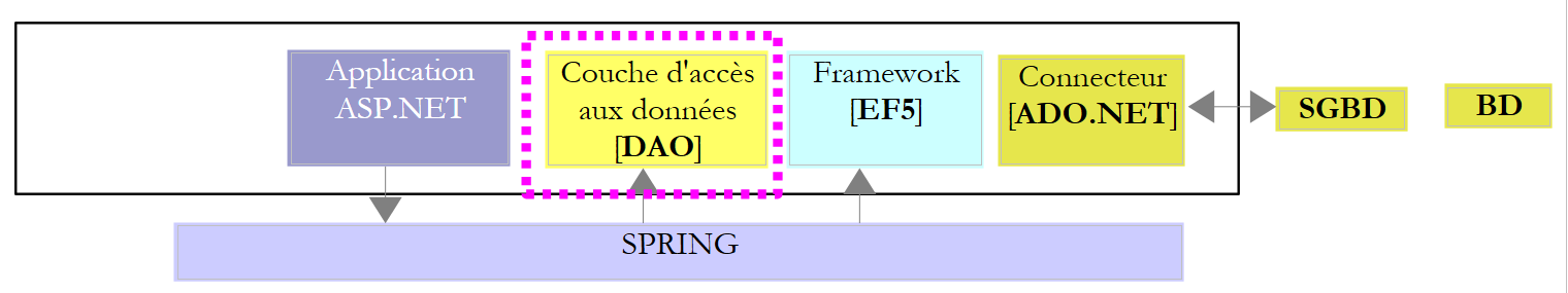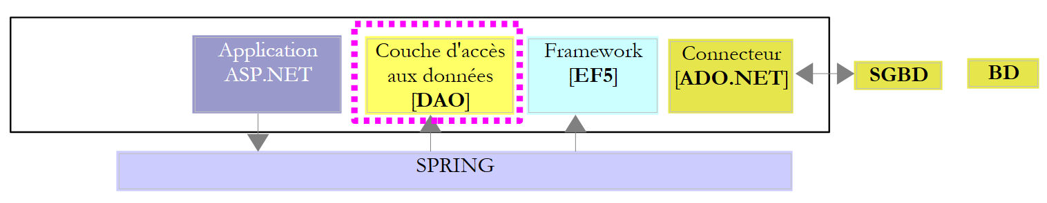 la couche [ASP.NET] aura à sa disposition les couches à sa droite sous la forme de DLL. Nous construisons donc la DLL de la couche [DAO].