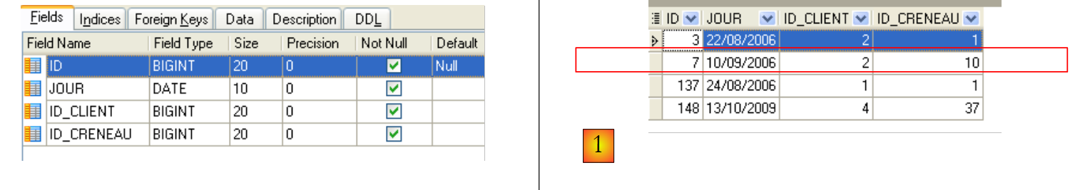- en [6], on définit une table à deux colonnes ID et NOM ;
