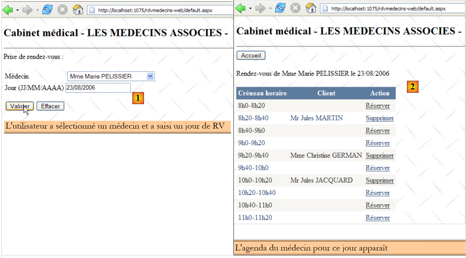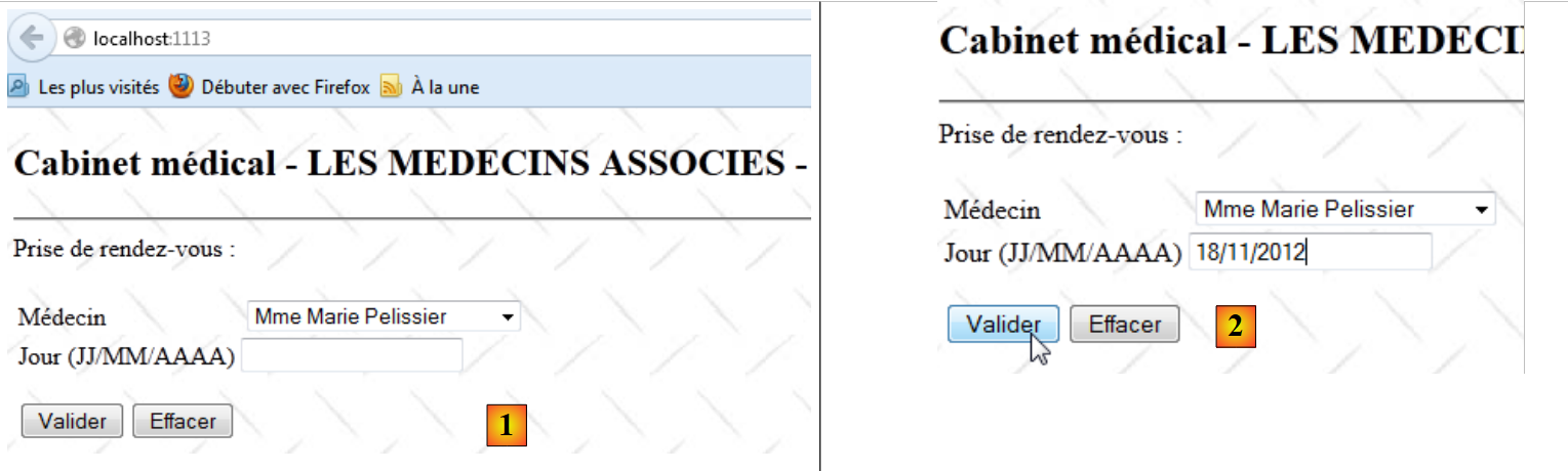 - en [2], on entre un jour de rendez-vous et on valide ;