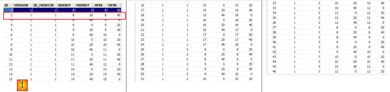 - ID : n° identifiant le médecin - clé primaire de la table