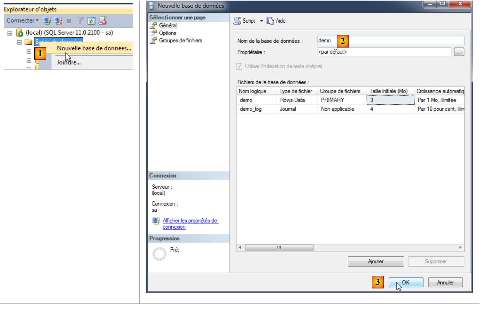 Nous allons maintenant créer une base de démonstration :