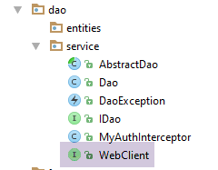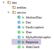 - the [DAO] layer implements an [IDao] interface. It is responsible for communicating with the web/JSON server;