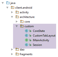 - the activity’s lifecycle (save / restore) is managed by an abstract class [AbstractActivity], which also requires the child activity to implement certain methods;