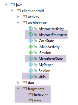 - the lifecycle of a fragment (update, save, restore) is managed by its parent class [AbstractFragment], which calls certain methods of its child classes at specific times. The child class thus does not have to worry about the lifecycle stages but only needs to implement certain methods required by its parent class;