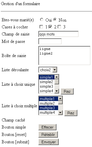 The [server HTML] and [WebForms] tags allow you to include objects in the presentation code that are more complex than the simple [String] object. This can sometimes be very useful. Let’s take the example of a form with a list. This list must be presented to the client with HTML code that looks like this: