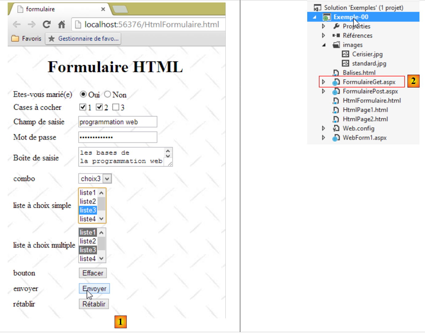 The screenshot above shows the URL requested by the browser after clicking the [Submit] button. It does indeed request the expected URL [FormulaireGet.aspx], but appends additional information—the values entered in the form. To get more information, click the link above: