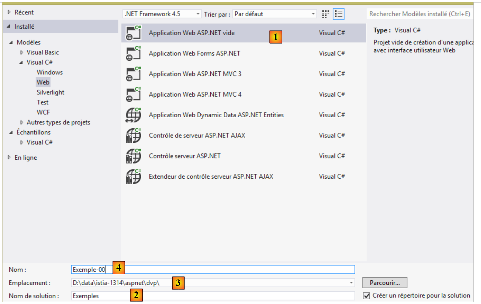 - in [2], enter the name of the Visual Studio solution. All examples in this document will be in the same solution;