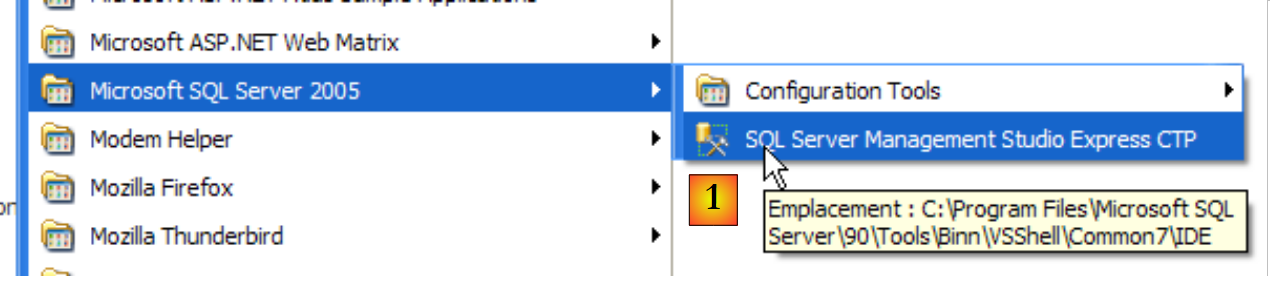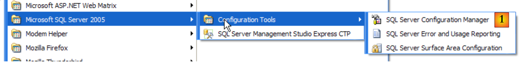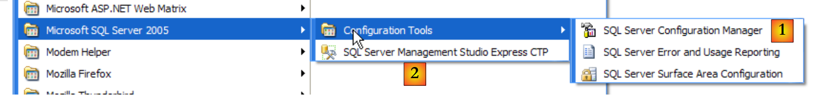 We will do the same with the [SQL Server Browser] service (see [5] above). To manually start and stop the SQL Server 2005 service, we can use the [1] application in the [SQL Server] folder: