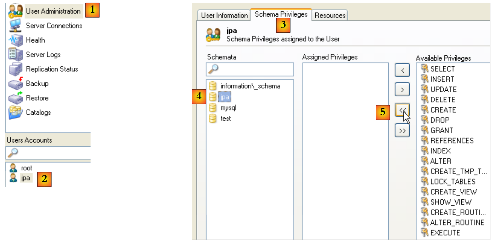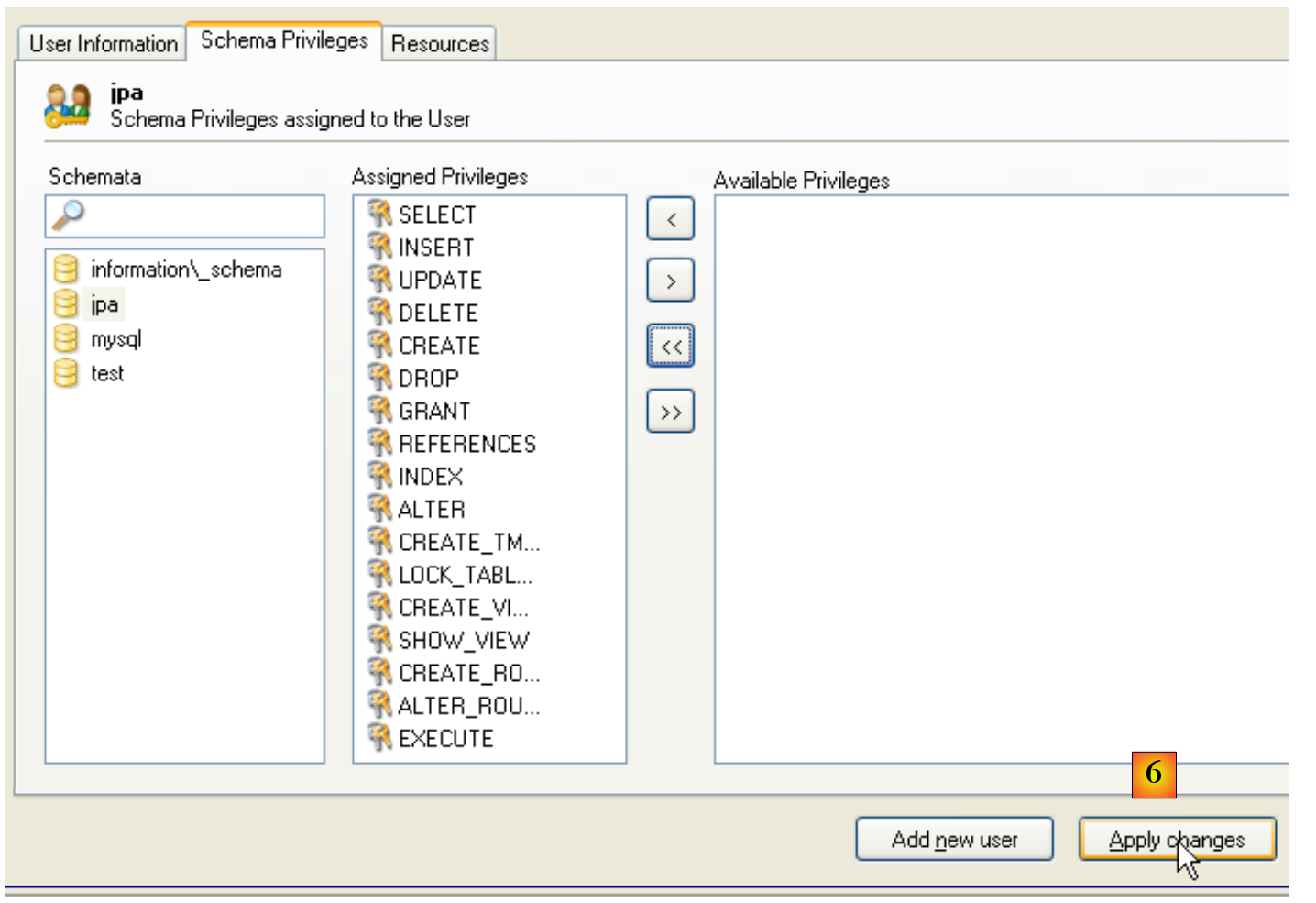 - in [3]: select the [Schema Privileges] tab