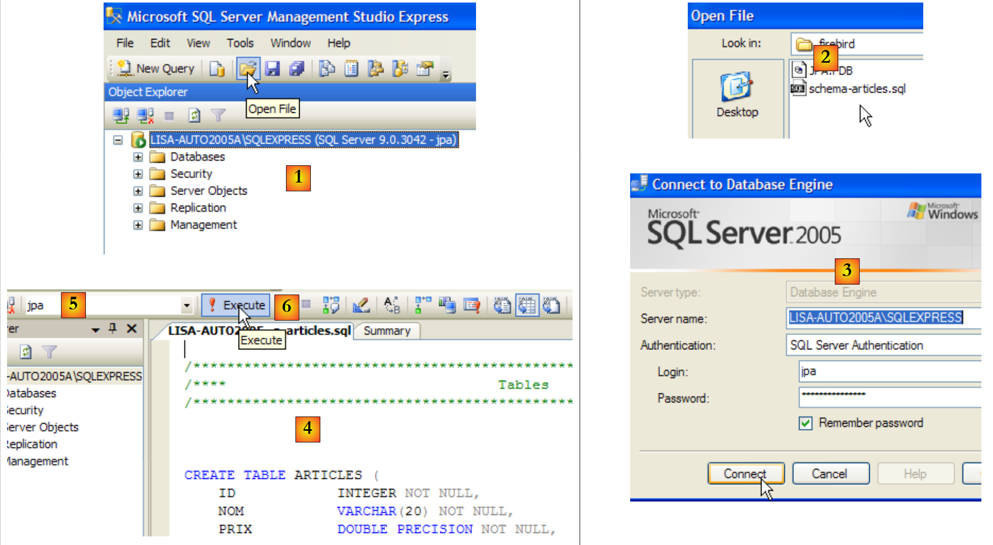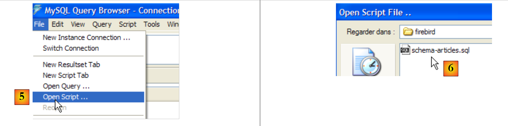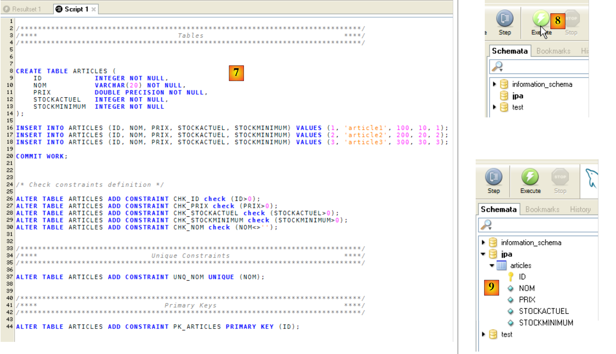 - in [6]: select the following script [schema-articles.sql]: