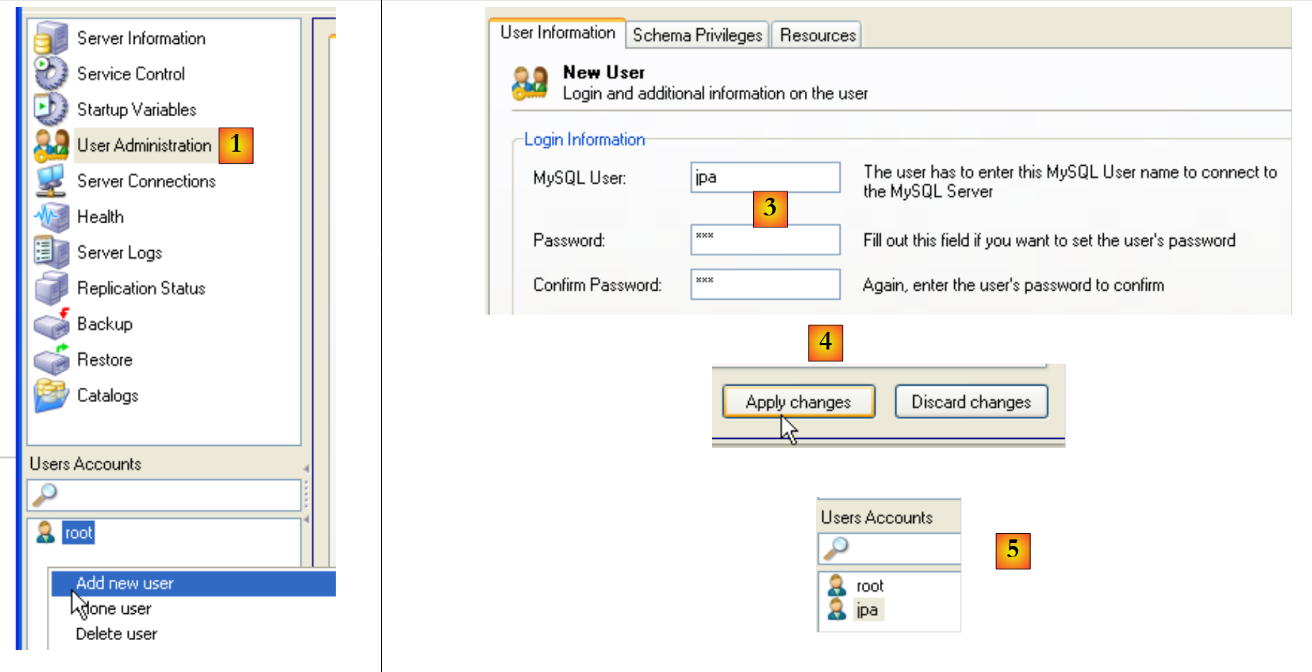 - in [5]: the user [jpa] appears in the [User Accounts] window
