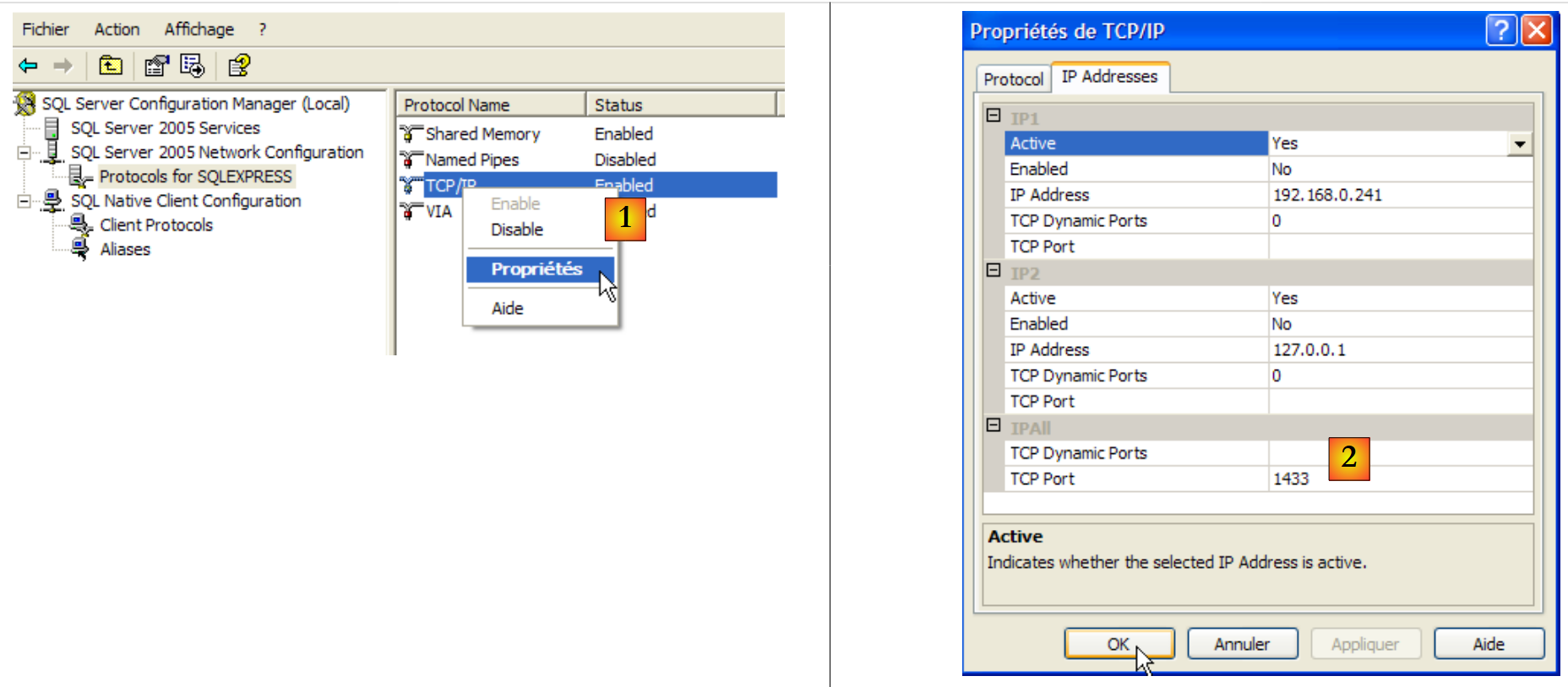 - in [1]: ensure that the TCP/IP protocol is enabled, then go to the protocol properties.