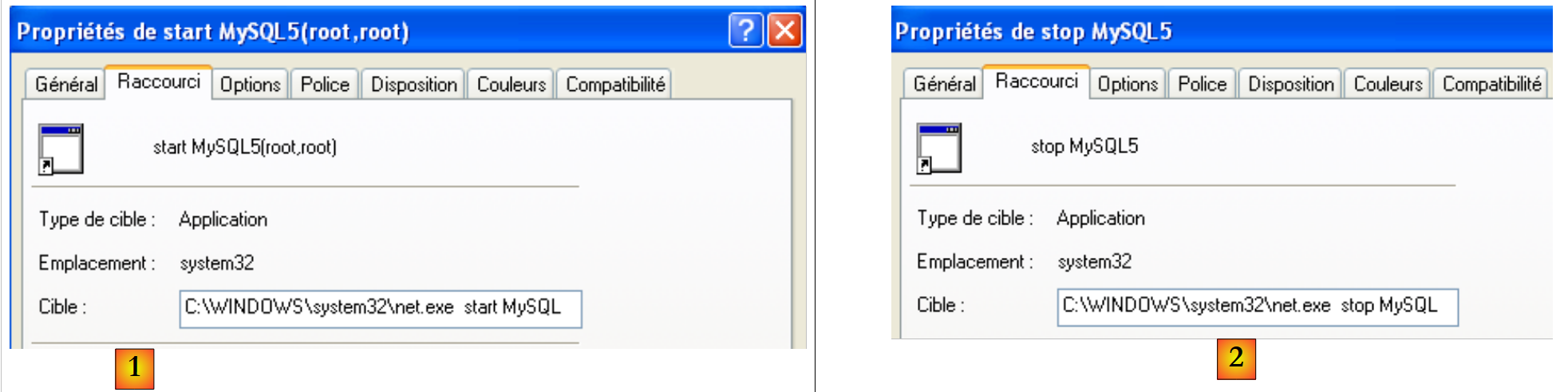 To manually start and stop the MySQL service, we can create two shortcuts: