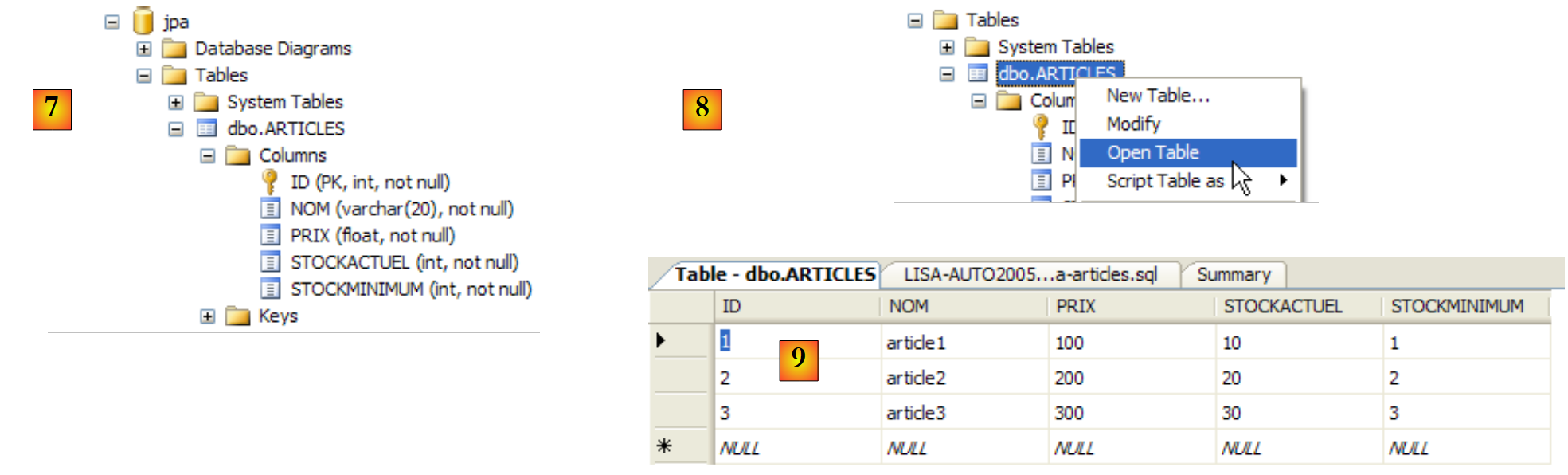 14.1.4. Creating the [ARTICLES] table in the jpa database