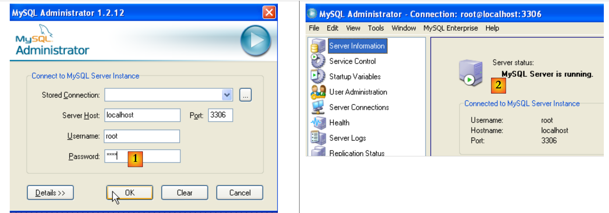 Launch MySQL (using the shortcuts you created), then launch [MySQL Administrator] via the menu above: