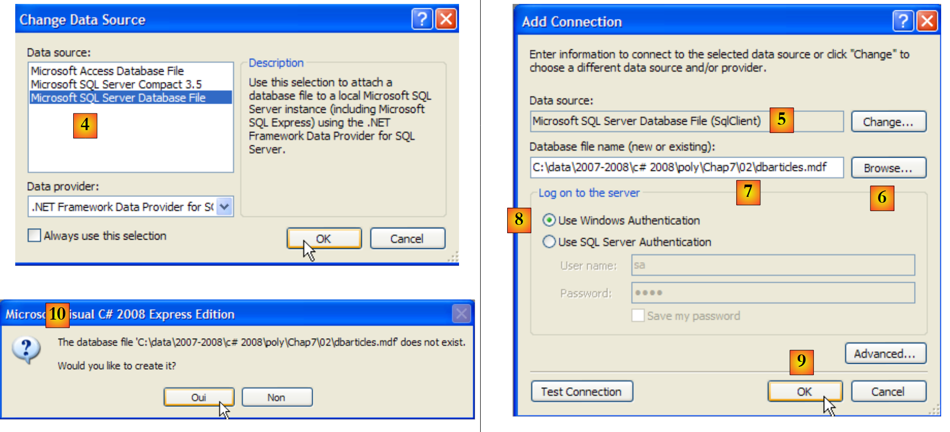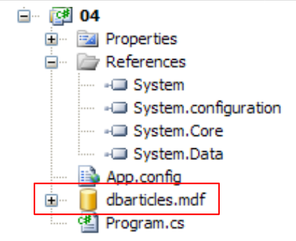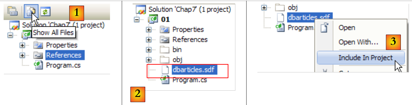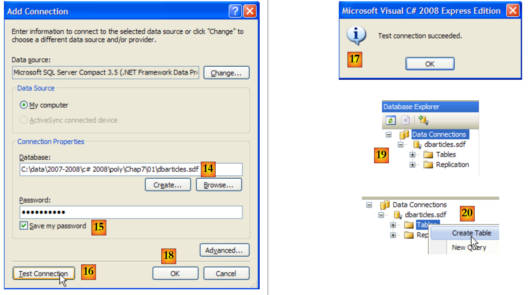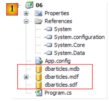 - [8]: A SQL Server Compact database is encapsulated in a single file with the .sdf extension. Specify where to create it; here, in the C# project folder.