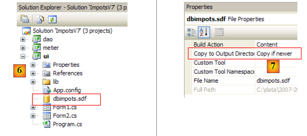 - [7]: The database [dbimpots.sdf] will be copied to the project's runtime folder.