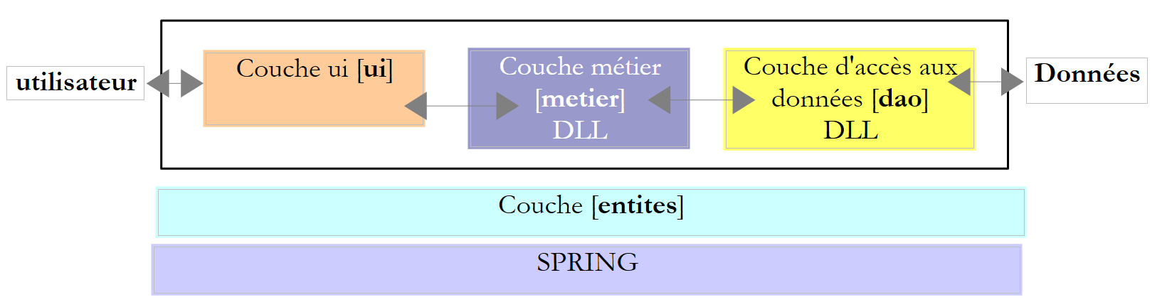 - in [4], the configuration file [App.config] is similar to that of version 6. It differs only in the way the [dao] layer is instantiated by Spring: