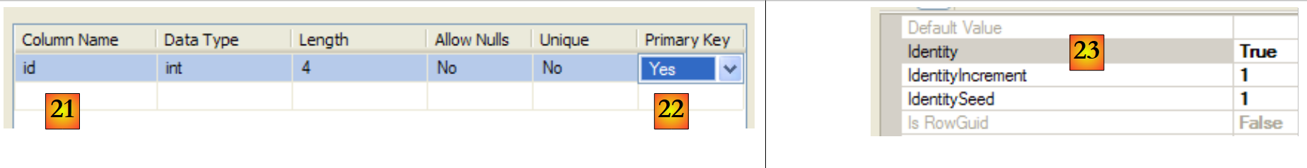 - [4]: The [id] column is the primary key and has the Identity attribute: the DBMS will assign its values.