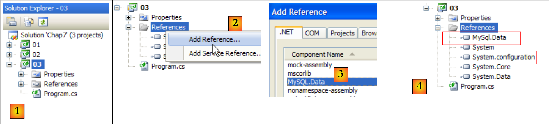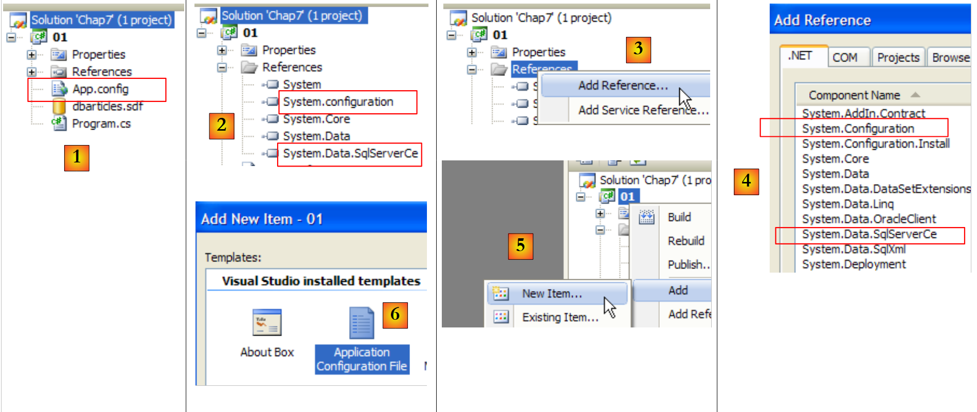 A console application [1] will utilize a SQL Server Compact database [3,4] via this DBMS’s ADO.NET connector [2].