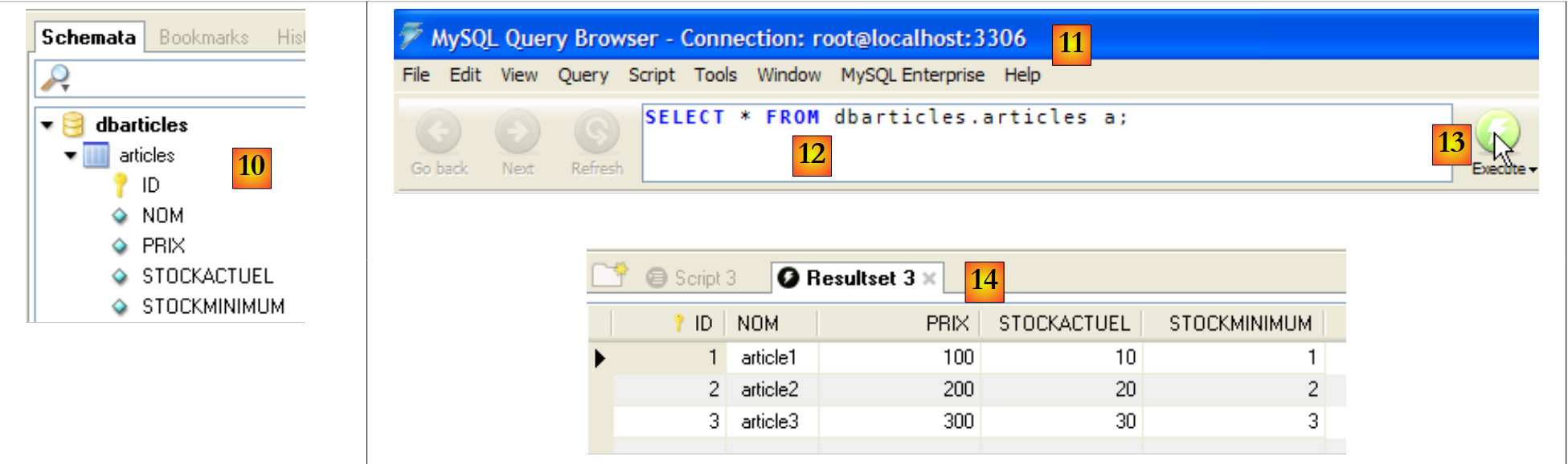 The execution results are identical to the previous ones. Note the advantage of using a generic connector to make the [dao] layer independent of the DBMS. However, we have seen that this connector is not suitable for all situations, particularly those where parameterized queries are used. There are other solutions, such as the ones mentioned, including third-party data access frameworks (Spring, iBatis, NHibernate, LINQ, etc.).