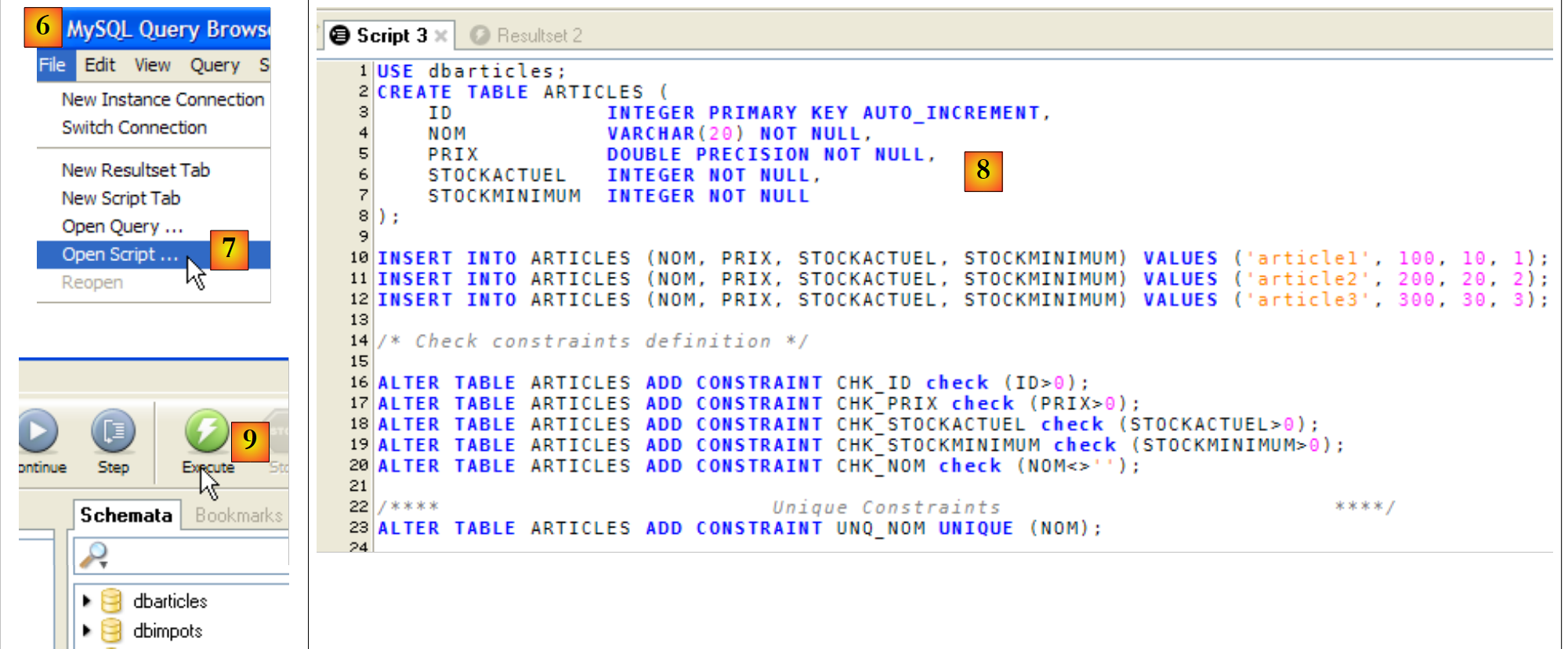 We will write a console application that issues SQL commands on the [dbarticles] database we created earlier. Here is an example of the application in action. The reader is encouraged to understand the SQL commands issued and their results.