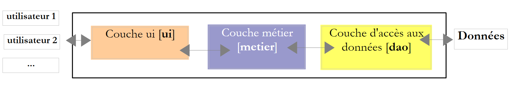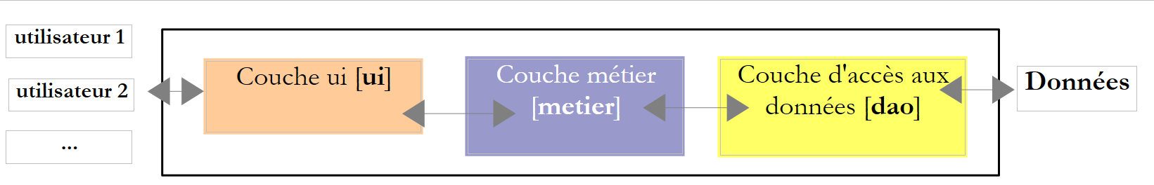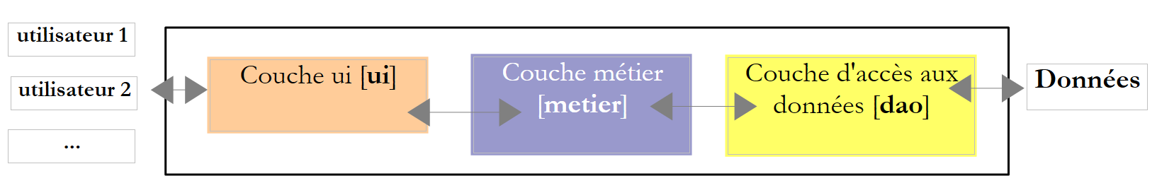 The previous example demonstrated the value of thread-local data for transaction management. It should not be replicated exactly as shown. Frameworks such as Spring, NHibernate, etc., use this technique but make it even more transparent: the [business] layer can use transactions without the [DAO] layer needing to be aware of it. There are therefore no Transaction objects in the [DAO] layer code. This is achieved using a proxy technique called AOP (Aspect-Oriented Programming). Once again, we can only encourage the reader to use these frameworks.