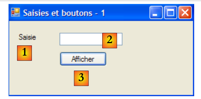 3 | buttonShow | Button | to display the contents of the textBoxSaisie text box in a dialog box |