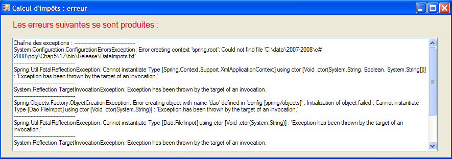 - line 29: calculation of the tax using the [CalculateTax] method of the [business] layer. Note the simplicity of this operation, achieved by encapsulating the [business] layer in a DLL.