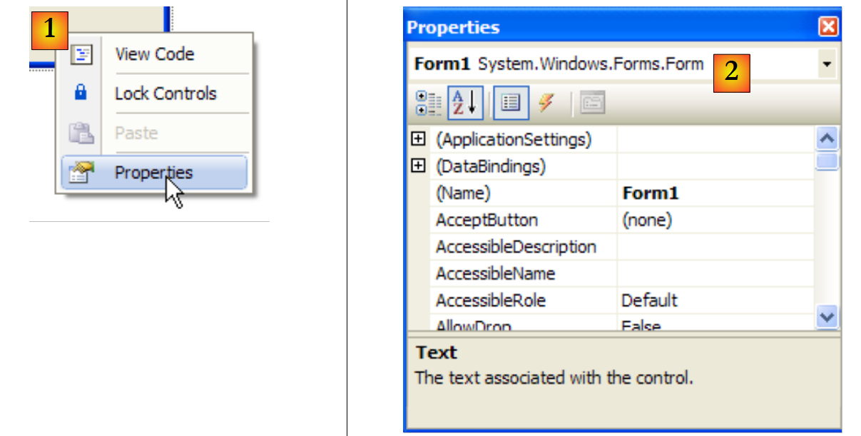 - [1]: Right-click on the form outside of any component and select the [Properties] option