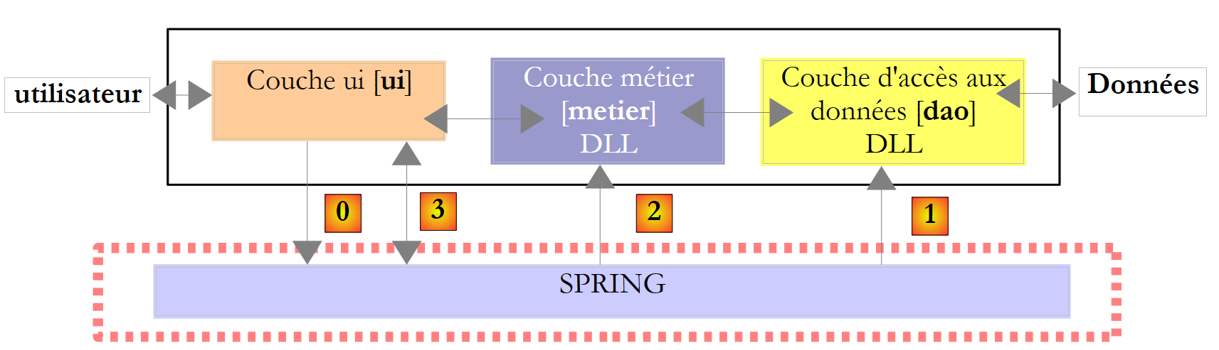 This architecture allowed us to replace the console implementation of the existing [ui] layer with a graphical implementation, without changing anything in the [business] and [dao] layers. We were able to focus on the [ui] layer without worrying about potential impacts on the other layers. This is the main advantage of three-tier architectures. We’ll see another example of this later, when the [dao] layer—which currently processes data from a text file—is replaced by a [dao] layer that processes data from a database. We’ll see that this can be done without affecting the [ui] and [business] layers.