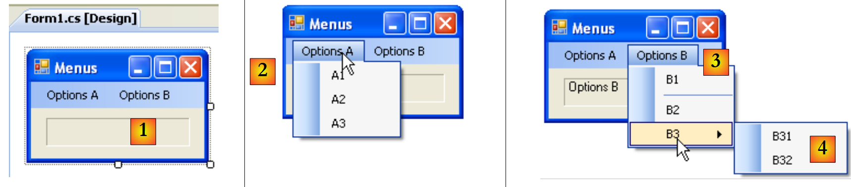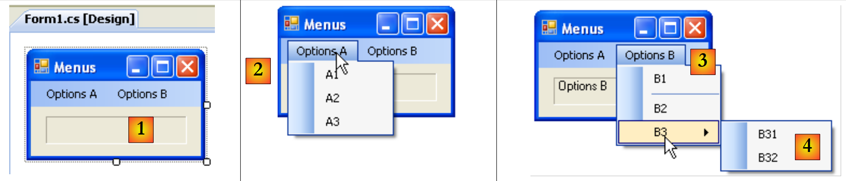 - [Form1.Designer.cs]: which contains the form’s components and their properties. This file is regenerated every time the user modifies the window in [Design] mode.