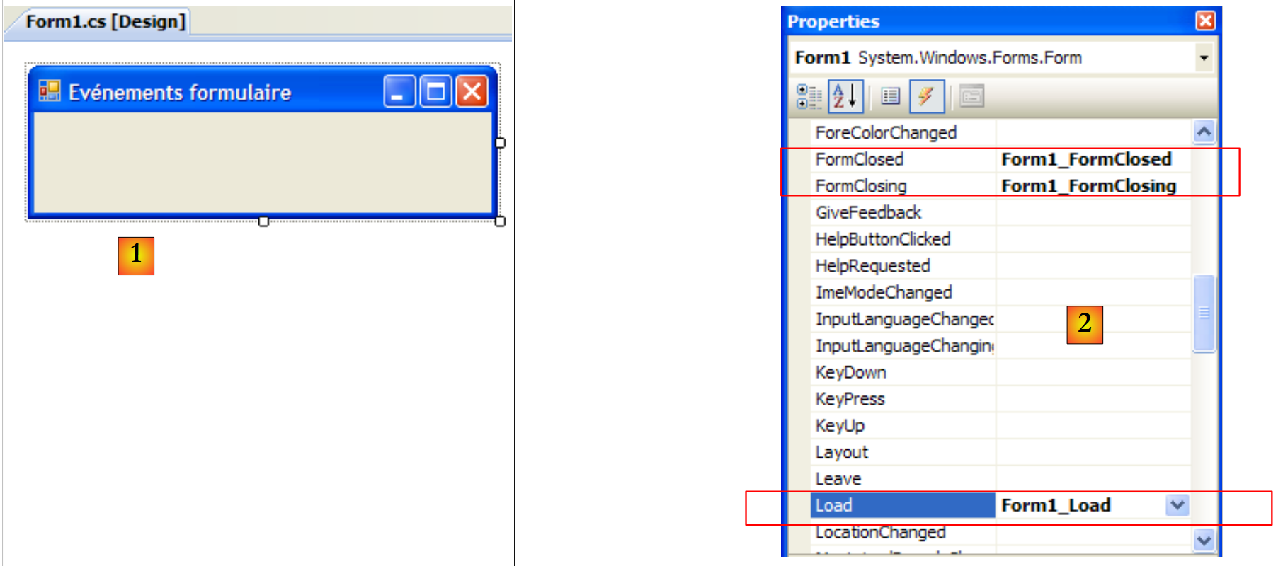 - [2]: The window's properties sheet appears in the lower-right corner of Visual Studio