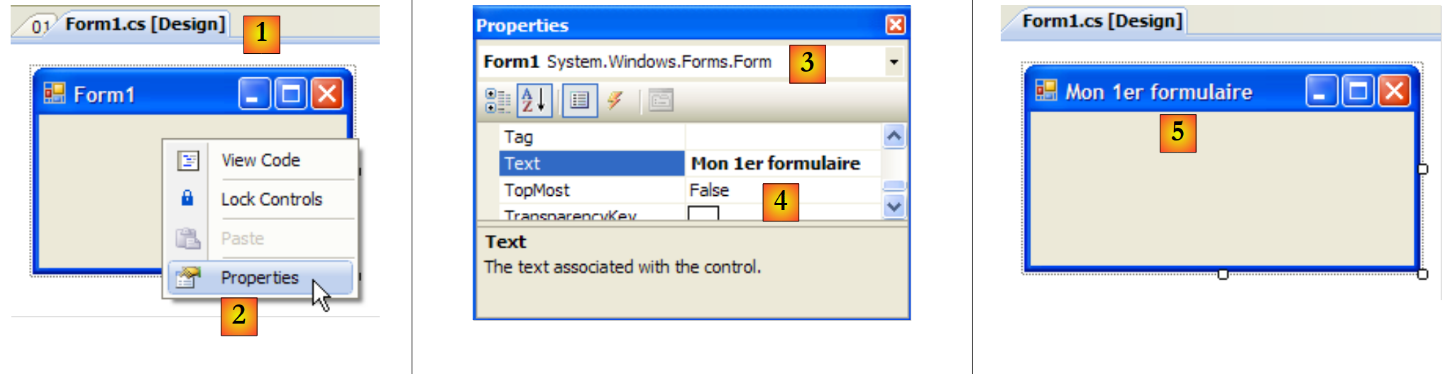 It is simpler at first not to concern yourself with the code in [Form1.Designer.cs]. It is generated automatically and is the C# translation of the choices the developer makes in [Design] mode. Let’s look at a first example: