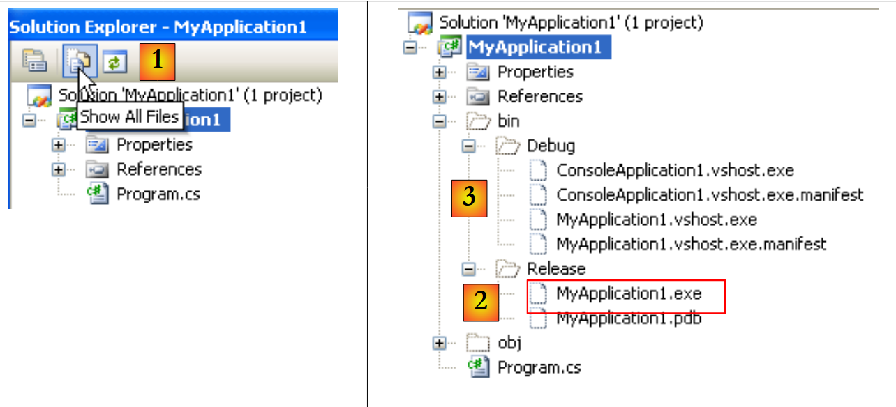- in [2]: the [Release] folder contains the project's executable [MyApplication1.exe].