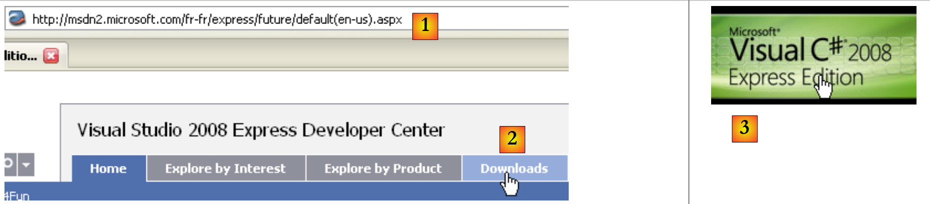 As of late January 2008, the Express versions of Visual Studio 2008 are available for download [2] at the following address [1]: [http://msdn2.microsoft.com/fr-fr/express/future/default(en-us).aspx]: