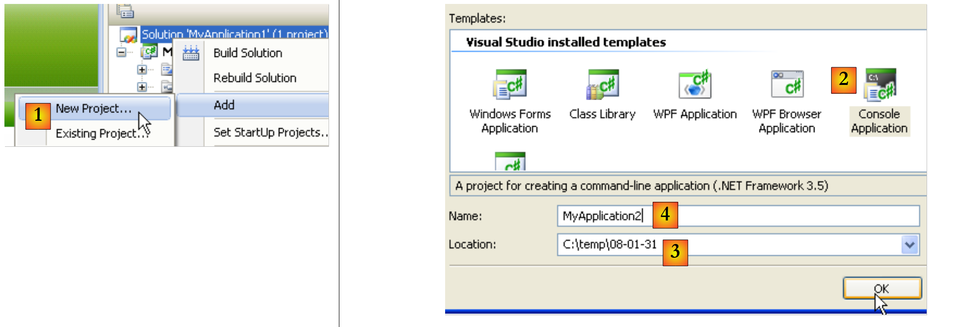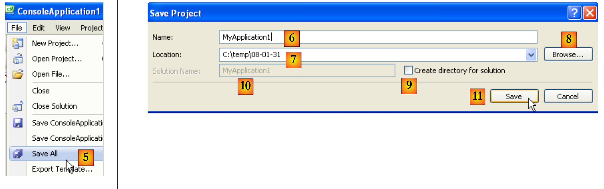 - You can rename the project in [6] and specify its folder in [7]. To do this, use [8]. In this case, the project will ultimately be located in the folder [C:\temp\08-01-31\MyApplication1].