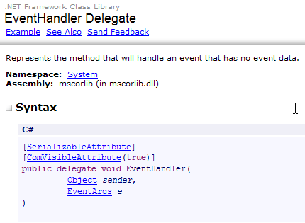 The EventHandler delegate is defined as follows: