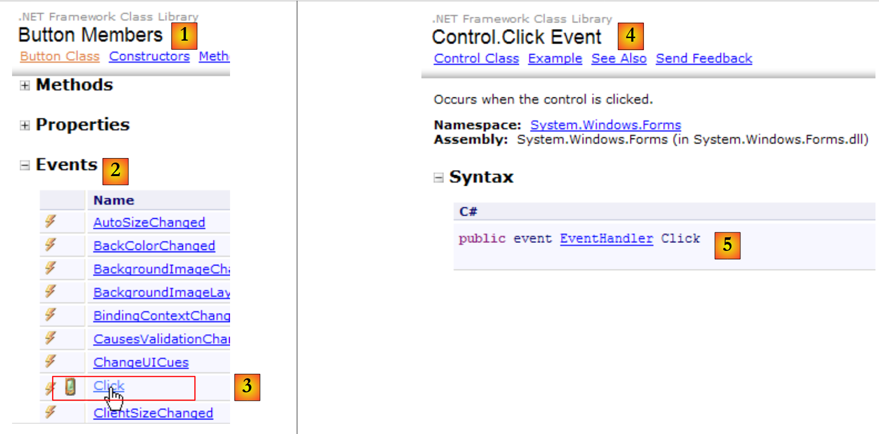 - [5]: the declaration of the [Control.Click] event [4].