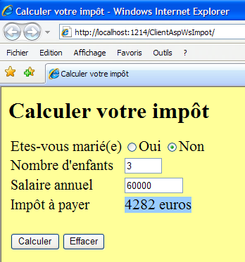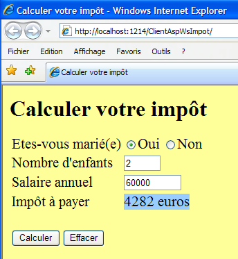 This URL is that of the [ServiceImpot.asmx] service, to which the parameter ?WSDL is added. The document located at this URL describes in XML what the service [15] can do. This is a standard component of a web service.
