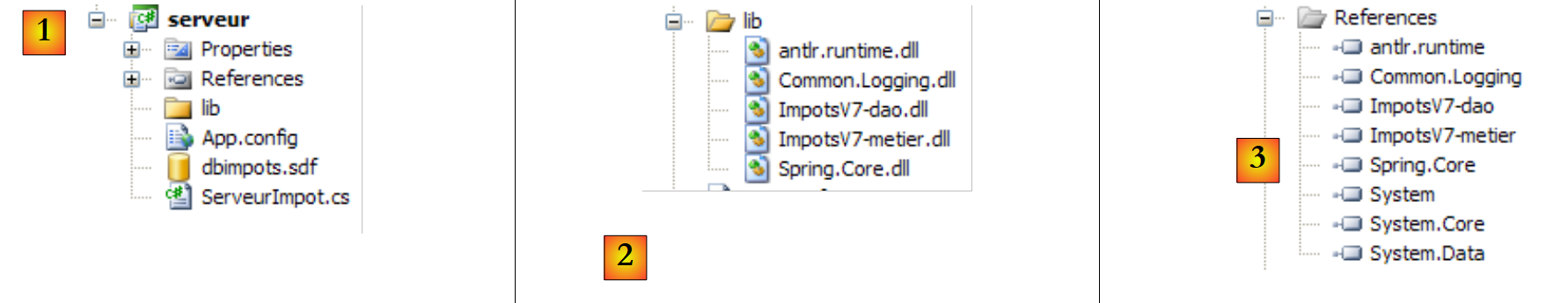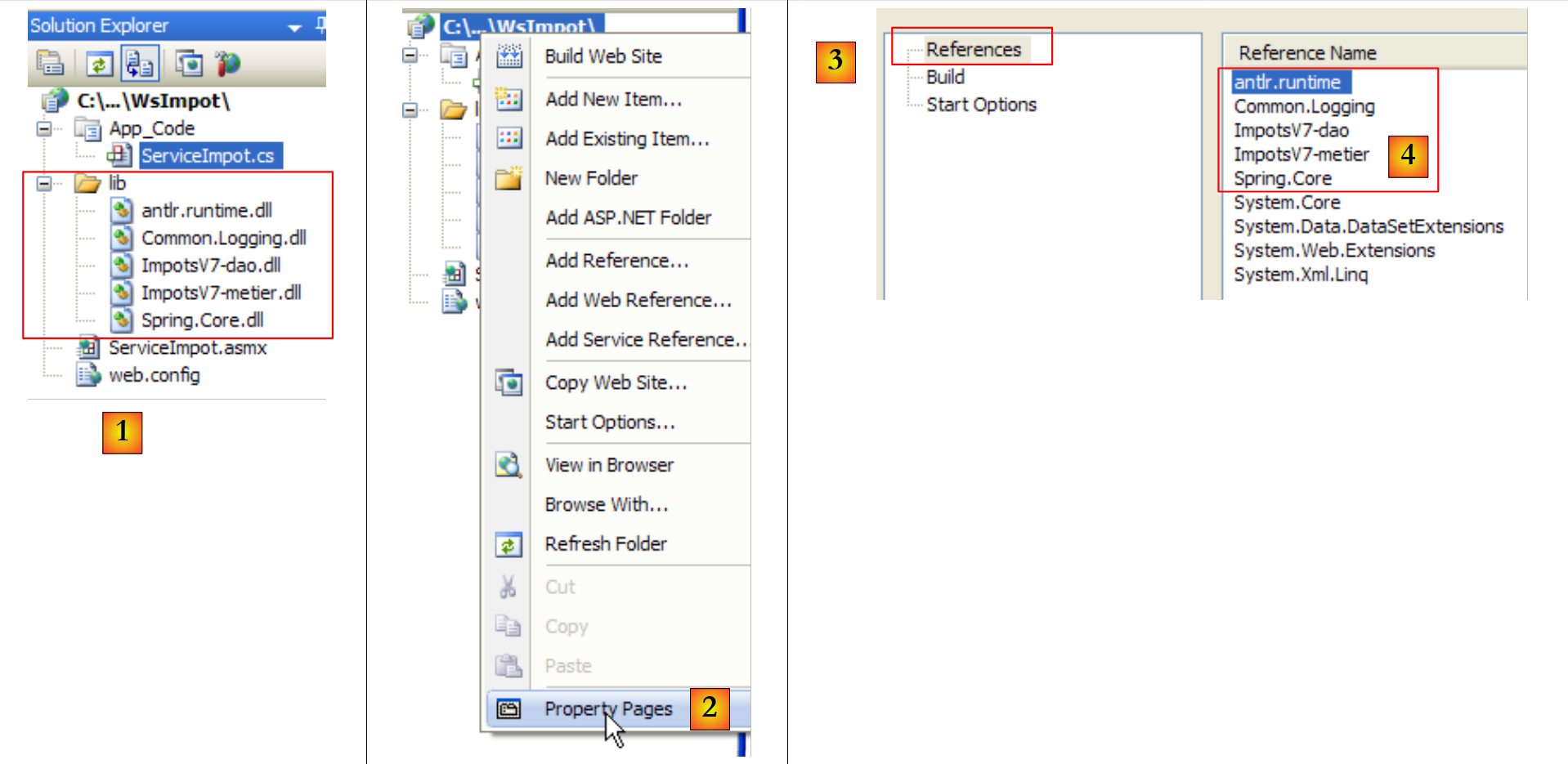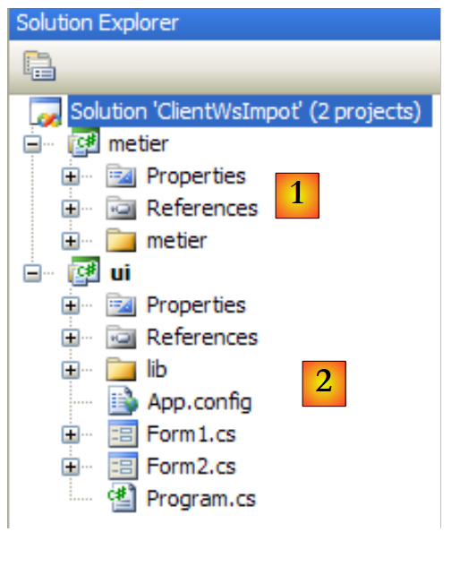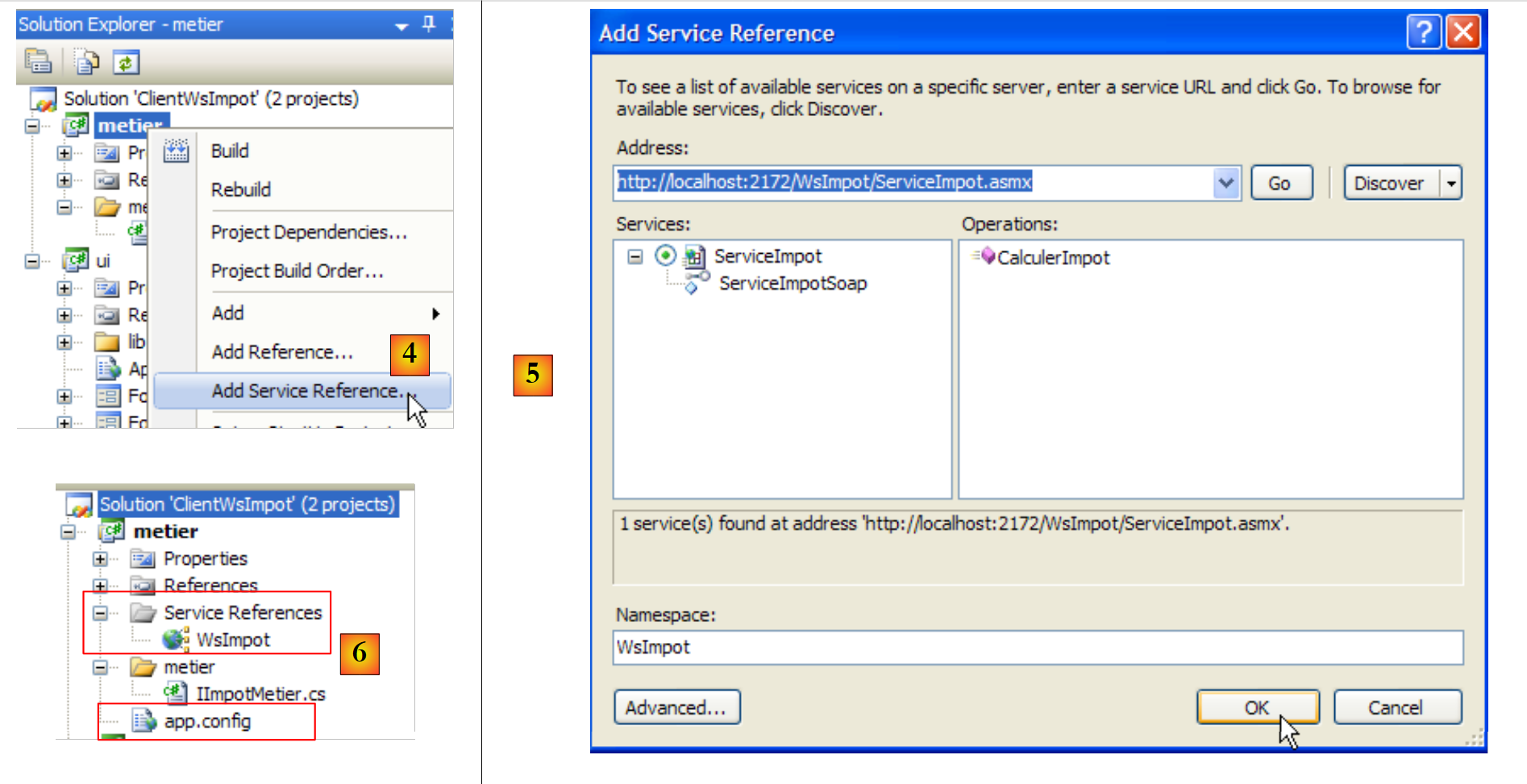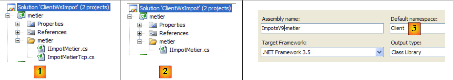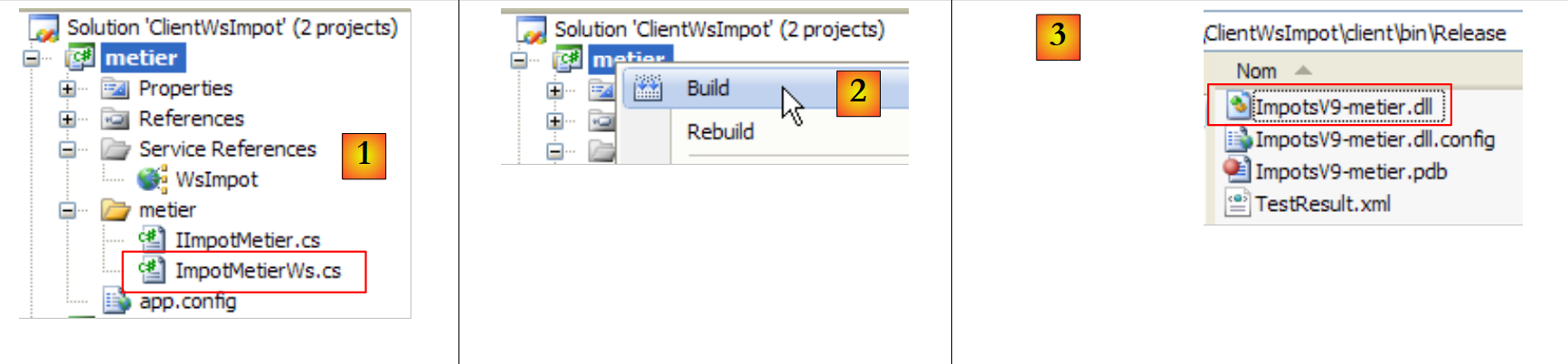 The [Metier.ImpotMetierWS] class in line (g) above is located in [ImpotsV9-metier.dll].